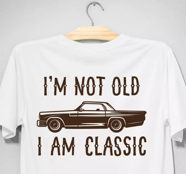 Αναφορά: T4519Αυτό το σχέδιο περιλαμβάνει ένα vintage αυτοκίνητο δίπλα σε ένα παιχνιδιάρικο κείμενο, τονίζοντας μια χιουμοριστική δήλωση σχετικά με τη γήρανση. Αποτυπώνει τέλεια μια νοσταλγική ατμόσφαιρα ενώ απευθύνεται στις οικογενειακές σχέσεις, καθιστώντας το ιδανικό για στιγμές σύνδεσης πατέρα-γιου.
