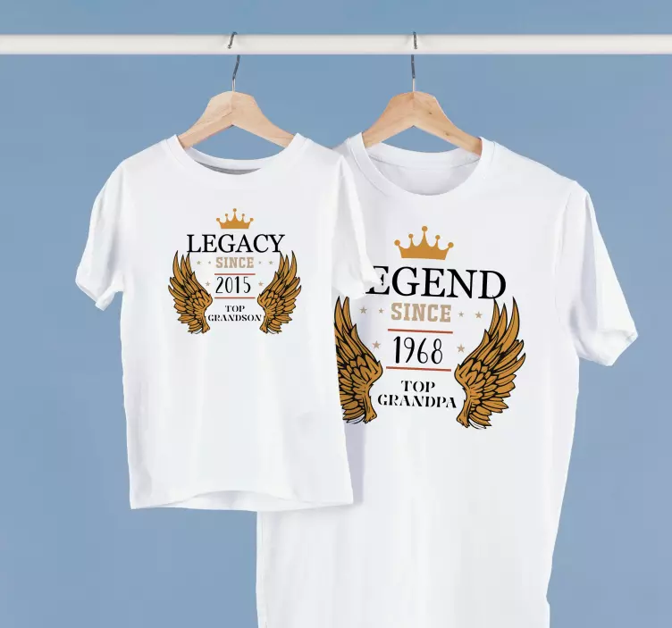 είναι ο τέλειος τρόπος για να δείξετε την οικογενειακή σας υπερηφάνεια. Το σχέδιο περιλαμβάνει ένα στέμμα με φτερά και ένα αντίστοιχο κείμενο: κληρονομιά από... κορυφαίο εγγονό, θρύλο από... κορυφαίο εγγονό. Είναι προσαρμόσιμο με την ημερομηνία της επιλογής σας. Αυτό το κομμάτι είναι το τέλειο πουκάμισο για τον παππού και τον εγγονό που θα τους κάνει να φαίνονται κομψοί και ενωμένοι.Γιατί αυτό το προϊόν πρέπει να χρησιμοποιείται για ρούχα