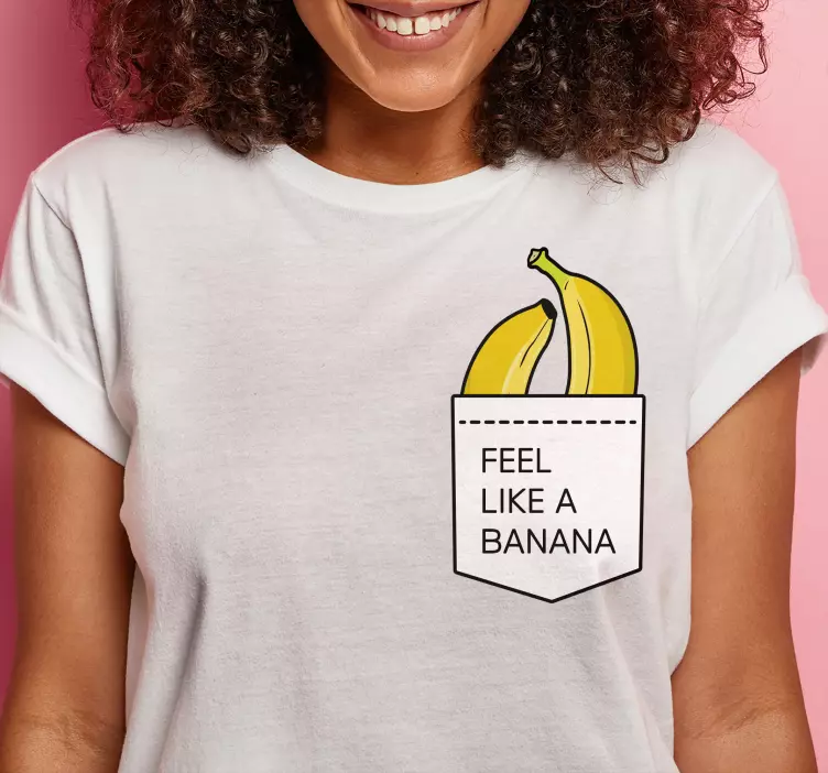Αναφορά: T4147Αυτό το σχέδιο περιλαμβάνει ζωντανές μπανάνες που κρυφοκοιτάζουν από μια τσέπη με το κείμενο 'Feel Like A Banana.' Η παιχνιδιάρικη απεικόνιση μεταφέρει μια ανάλαφρη και χαρούμενη ατμόσφαιρα, ιδανική για καθημερινή ένδυση. Ιδανικό για αυτούς που απολαμβάνουν διασκεδαστικές και quirky δηλώσεις μόδας.