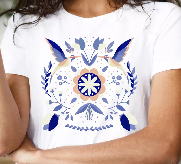 Ανακαλύψτε το Μπλουζάκι με Λουλουδένιο Σχέδιο Πουλιών, το οποίο συνδυάζει την κομψότητα με τη φυσική ομορφιά! Το γραφικό σχέδιο αυτού του μπλουζακιού περιλαμβάνει στοιχεία όπως στίλβωση, λουλούδια και πουλιά, δημιουργώντας μια φαντασιόπληκτη και παραδοσιακή ατμόσφαιρα. Με πολύχρωμα και διακοσμητικά μοτίβα που αποπνέουν φύση και λαογραφία, αυτό το ανδρικό και γυναικείο μπλουζάκι είναι ιδανικό για κάθε περίσταση.