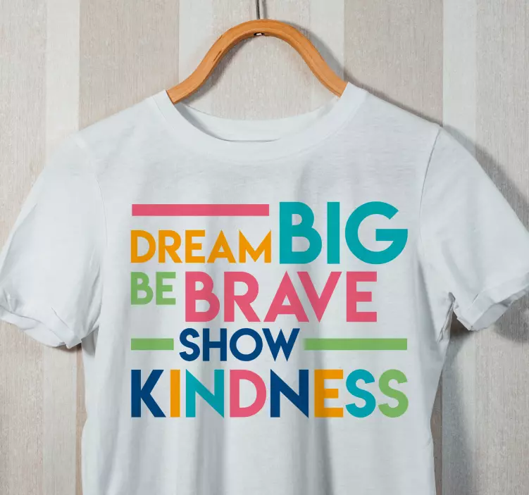 Αναφορά: T4142Αυτός ο σχεδιασμός περιλαμβάνει inspiring words σε ζωντανά χρώματα, ενθαρρύνοντας την θετικότητα και την καλοσύνη. Το μήνυμα, διαμορφωμένο με παιχνιδιάρικη τυπογραφία, αντηχεί στους θεατές, καθιστώντας το ιδανικό για την καλλιέργεια μιας υποστηρικτικής ατμόσφαιρας. Ιδανικό για εκείνους που πιστεύουν στην διάδοση της ελπίδας και της ενθάρρυνσης μέσω του στυλ τους.