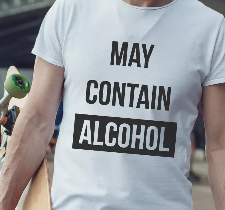 Γνωρίστε το Μπλουζάκι Μπορεί να περιέχει αλκοόλ, το οποίο συνδυάζει μια τολμηρή και ανέμελη δήλωση με αστείους γραφιστικούς σχεδιασμούς. Το σχέδιο του μπλουζακιού ενσωματώνει κείμενα που προκαλούν γέλιο και χιούμορ, δημιουργώντας μια μοναδική ατμόσφαιρα που θα εντυπωσιάσει τους πάντες!