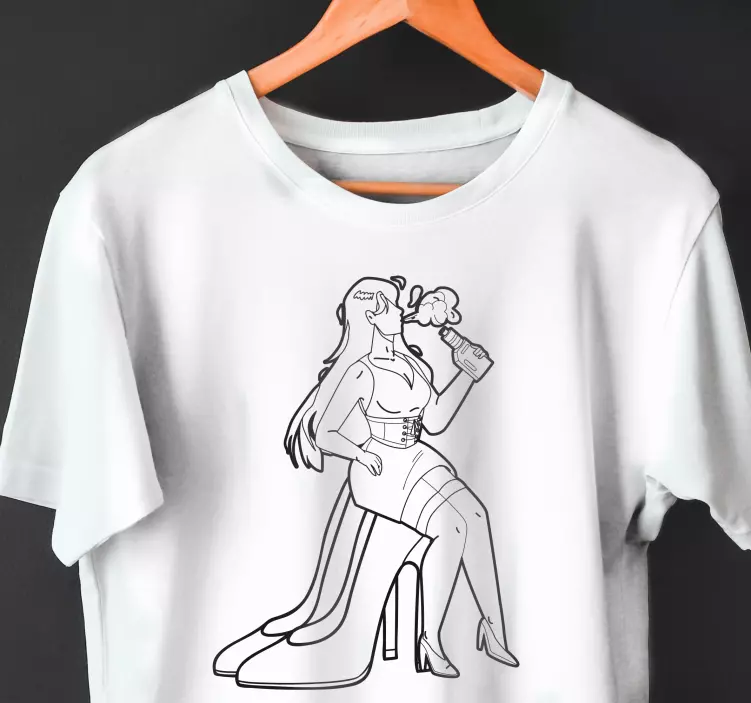 Ανακαλύψτε το μοναδικό Μπλουζάκι με Στυλάτο Ψηλοτάκουνο Αίσθημα που συνδυάζει την κομψότητα με την άνεση! Το σχέδιο του μπλουζιού απεικονίζει μια γυναίκα με εντυπωσιακή σιλουέτα, σχεδιασμένη στο χέρι με μια αίσθηση μόδας που αποπνέει τακούνια και σκίτσο. Στη σκηνή της μόδας, η εικόνα της είναι βέβαιη και σαγηνευτική, ενώ η λεπτομέρεια του καπνίσματος και του ατμιστικού στυλ προσθέτει μια δόση ελευθερίας. Με την απεικόνιση αυτή, το μπλουζάκι σας προσφέρει έναν αέρα κοκτέιλ για τις βραδινές σας εξόδους!