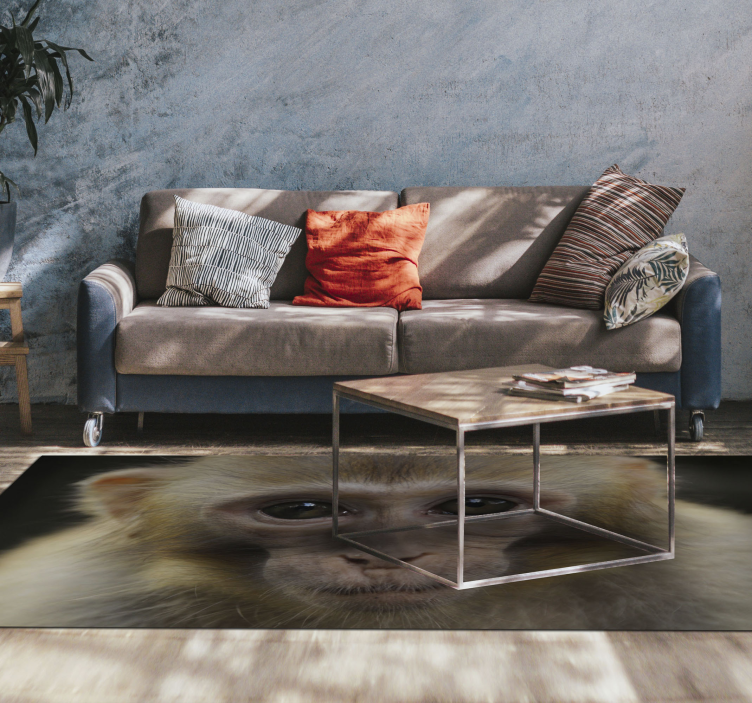 Το animal vinyl rug πρόσωπο μωρού μαϊμούς είναι ιδανικό για να μεταμορφώσει κάθε δωμάτιο σε έναν μαγικό κόσμο. Η ζωντανή του εκτύπωση όχι μόνο προσθέτει χρώμα αλλά και δημιουργεί μία φιλόξενη ατμόσφαιρα που ενθουσιάζει μικρούς και μεγάλους. Είναι μία θαυμάσια επιλογή για παιδικά δωμάτια, παιχνίδια ή ακόμα και για το σαλόνι σας, δίνοντας μία παιχνιδιάρικη διάθεση. Ενσωματώστε τη φύση και την τέχνη στο σπίτι σας με αυτό το μοναδικό χαλί!