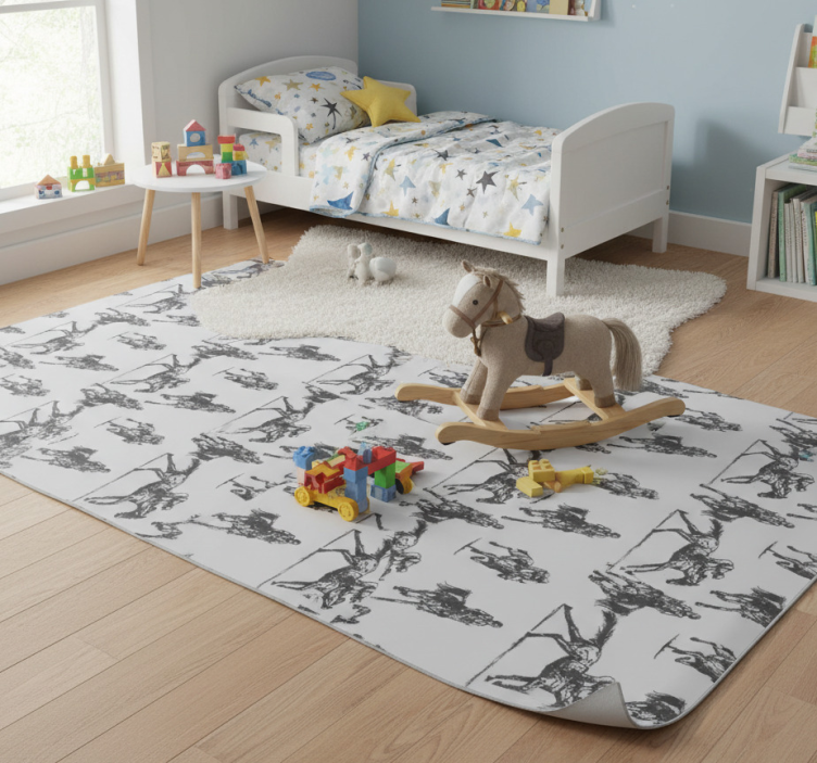 Το Χαλί με εκτύπωση ζώου γκρίζων αλόγων σε διάφορες στάσεις είναι η ιδανική επιλογή για να ανανεώσετε το χώρο σας! Με την εντυπωσιακή του εμφάνιση, προσφέρει μια αίσθηση φυσικής ομορφιάς και κομψότητας. Αναδείξτε κάθε γωνιά του σπιτιού σας και δημιουργήστε μια ατμόσφαιρα που ενθουσιάζει και εμπνέει! Είναι η τέλεια προσθήκη σε κάθε καθιστικό ή υπνοδωμάτιο, προσφέροντας ζεστασιά και στυλ.