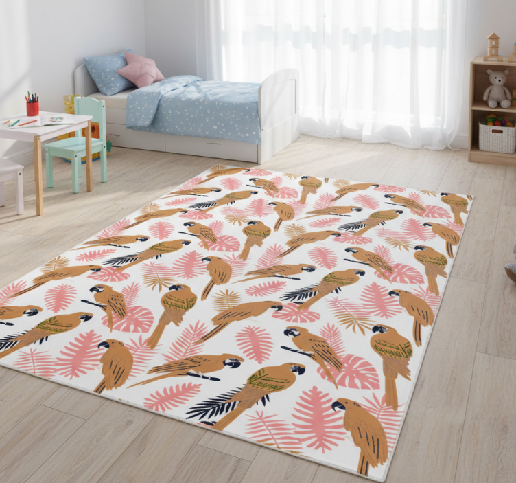 Χαλί με εκτύπωση ζώου πορτοκαλί παπαγάλοι με ροζ λουλούδια
