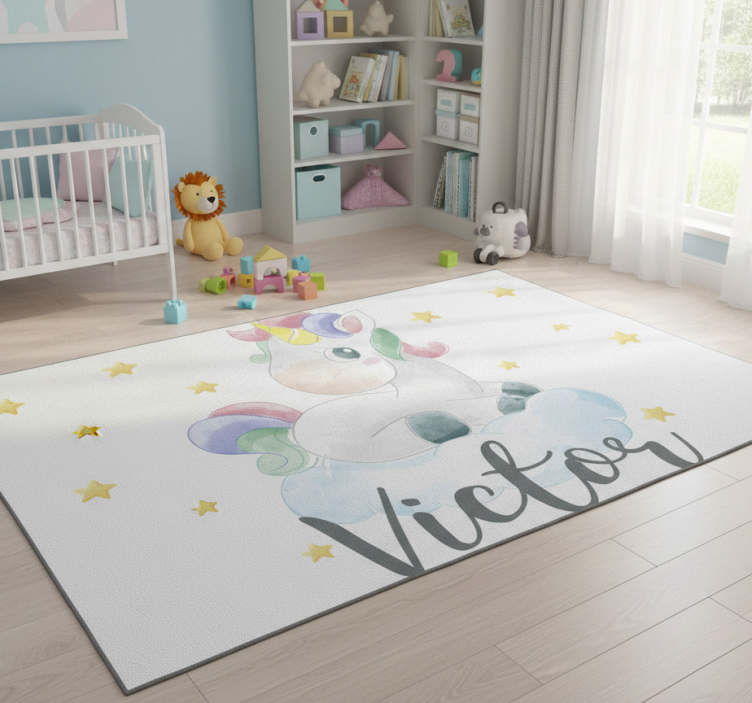 Χαλί με εκτύπωση ζώου μονόκερος με σύννεφα