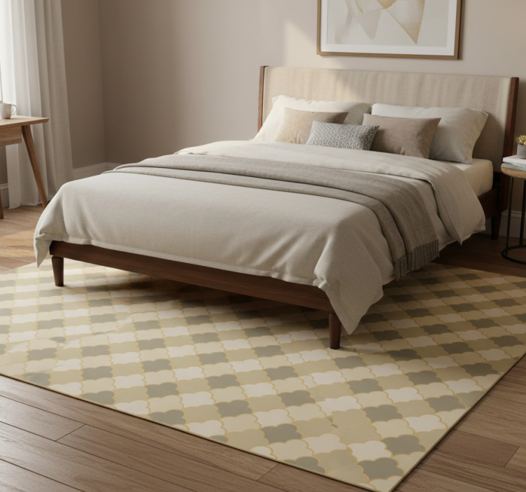 Το χαλί κρεβατοκάμαρας Χαλί κρεβατοκάμαρας με μπεζ αρτ ντεκό σχέδιο είναι η τέλεια επιλογή για να αναβαθμίσετε τη διακόσμηση του χώρου σας. Η ζεστή του απόχρωση και ο κομψός του σχεδιασμός προσφέρουν έναν μοναδικό χαρακτήρα που ταιριάζει σε κάθε στυλ. Απολαύστε την άνεση και τη φινέτσα που προσφέρει, κάνοντάς το τον ιδανικό σύντροφο για τις στιγμές χαλάρωσης σας!