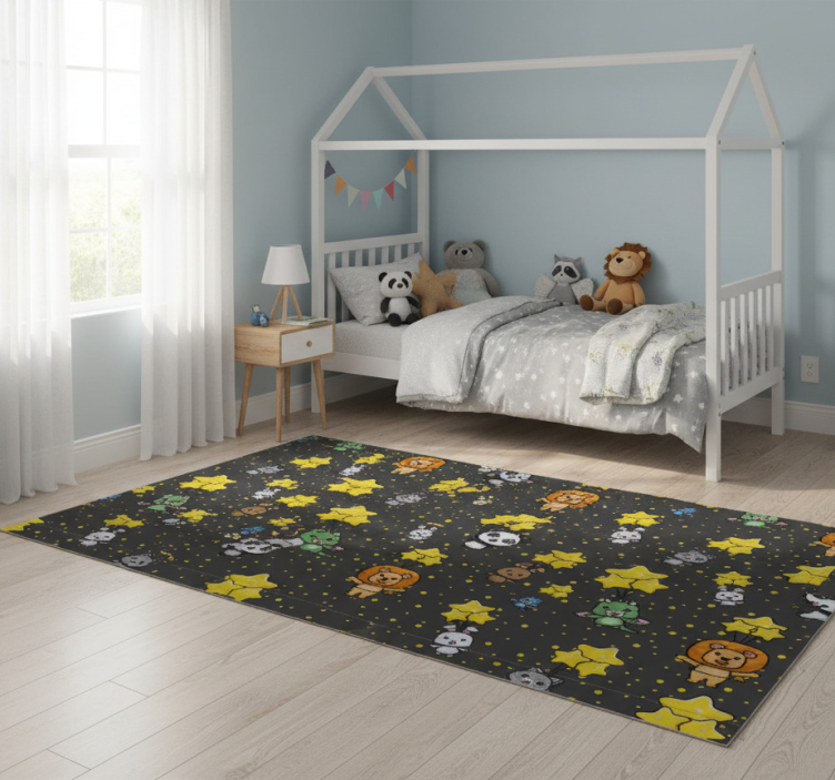 Το χαλί κρεβατοκάμαρας Χαλί κρεβατοκάμαρας με χαριτωμένα ζώα σε μπαλόνια είναι ο ιδανικός τρόπος να προσθέσετε ζωντάνια και χαρά στο σπίτι σας! Με το παιχνιδιάρικο του σχέδιο, θα δημιουργήσει μια ευχάριστη ατμόσφαιρα που εμπνέει χαλάρωση και ευτυχία. Είναι η τέλεια επιλογή για κάθε σπίτι που επιθυμεί να προσφέρει μία φιλόξενη και ζεστή αίσθηση.