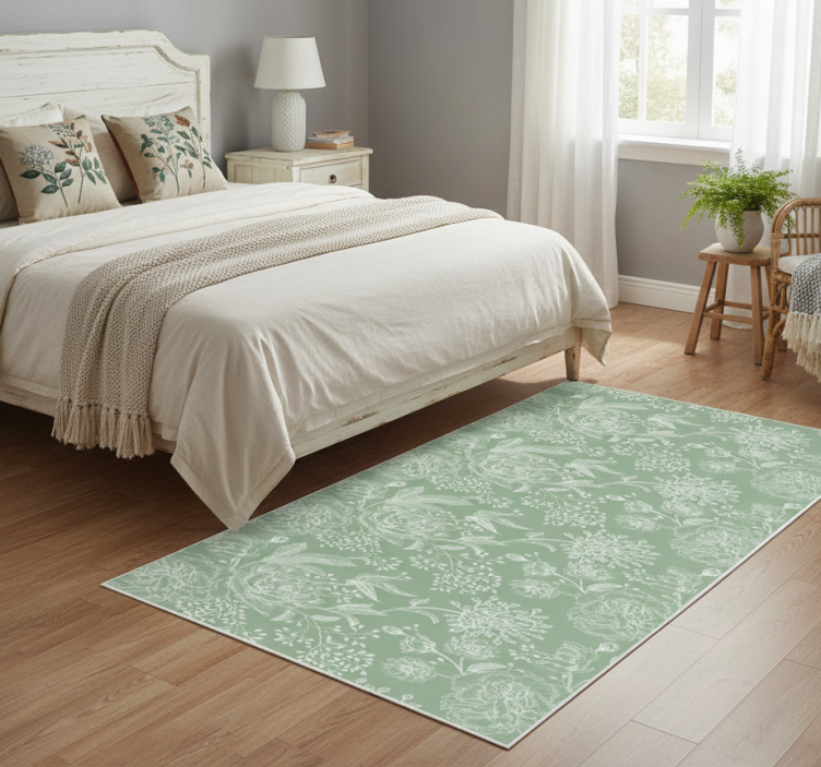Το χαλί κρεβατοκάμαρας Χαλί κρεβατοκάμαρας πράσινο λουλουδάτο grandmillenial στιλ είναι η τέλεια επιλογή για να αναβαθμίσετε τη διακόσμηση του σπιτιού σας! Με το φρέσκο λουλουδάτο σχέδιο και τις ζωντανές αποχρώσεις του, προσφέρει μία αίσθηση ηρεμίας και ομορφιάς. Δημιουργεί μία ζεστή ατμόσφαιρα, ιδανική για χαλάρωση και ευεξία. Αφήστε το να γίνει το κεντρικό στοιχείο της κρεβατοκάμαρας σας και απολαύστε την αλλαγή!