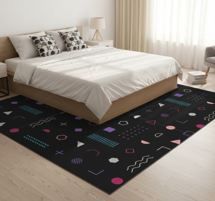 Το χαλί κρεβατοκάμαρας Χαλί κρεβατοκάμαρας πολύχρωμα ρετρό γεωμετρικά σχήματα είναι η τέλεια επιλογή για να δώσετε ζωή και προσωπικότητα στο δωμάτιό σας! Με το εντυπωσιακό του σχέδιο, δημιουργεί μια γοητευτική ατμόσφαιρα που μαγνητίζει τα βλέμματα και αναδεικνύει τη διακόσμηση σας. Με το χαλί αυτό, κάθε στιγμή είναι μια γιορτή!