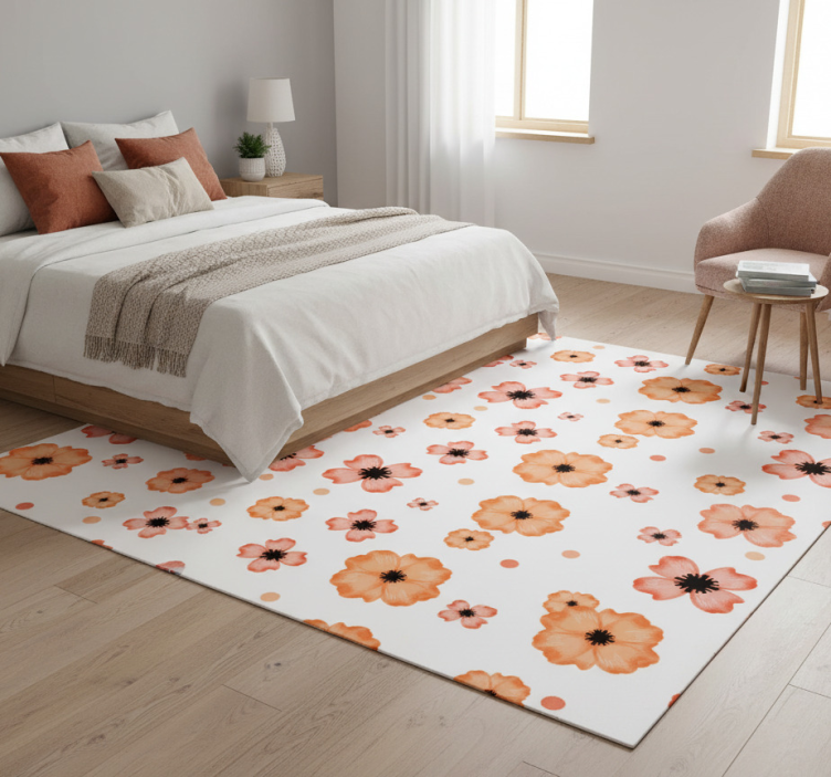 Χαλί κρεβατοκάμαρας σε πορτοκαλί και ροζ σχέδιο ακουαρέλας