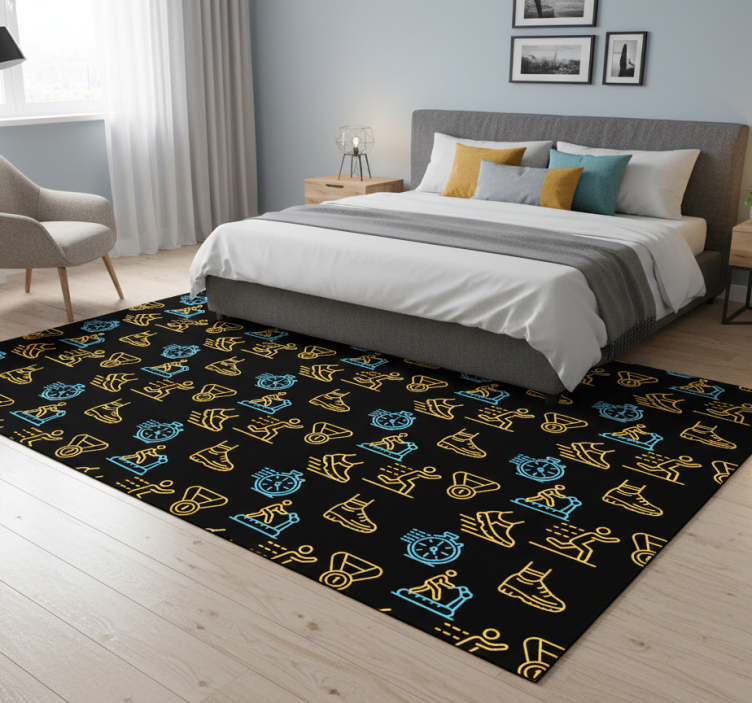 Χαλί κρεβατοκάμαρας με νεονικά εικονίδια σε μαύρο
