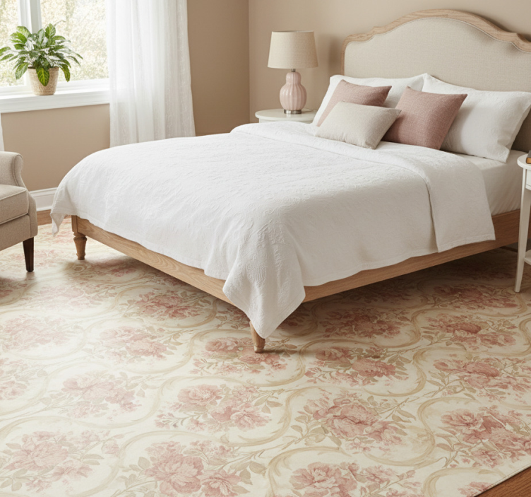Χαλί κρεβατοκάμαρας με σχέδιο λουλουδιών vintage