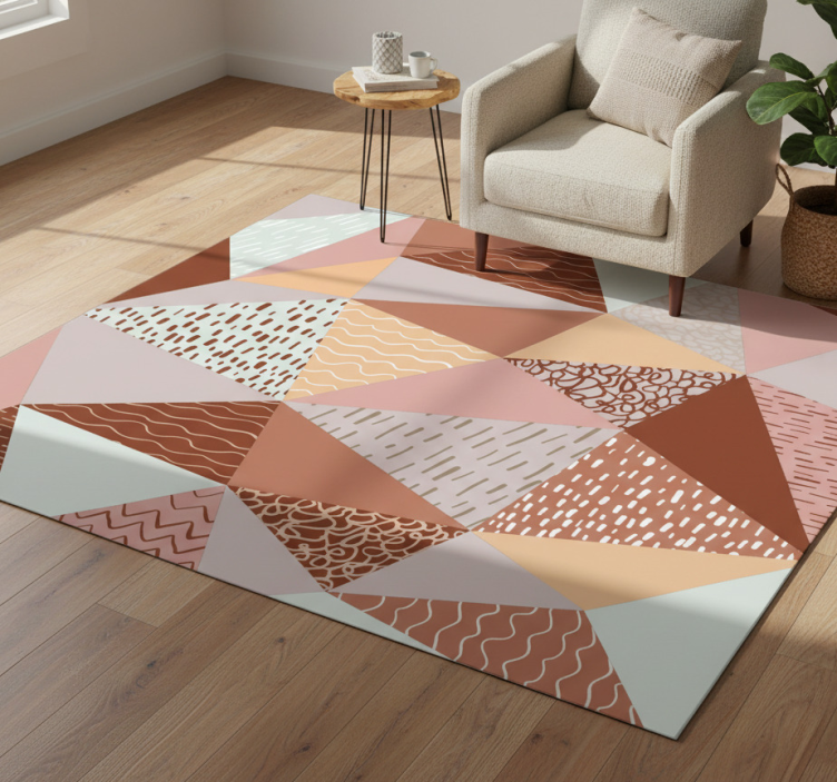 Το xαλί γεωμετρικού σχεδιασμού Χαλί γεωμετρικού σχεδιασμού σύνθεση τριγώνων είναι η τέλεια επιλογή για να ανανεώσετε τον χώρο σας! Με το εντυπωσιακό του σχέδιο, μεταμορφώνει οποιοδήποτε δωμάτιο σε μια κομψή και στυλάτη γωνιά. Δημιουργεί μια αίσθηση ισορροπίας και αρμονίας, κάνοντάς το ιδανικό για την διακόσμηση του σπιτιού σας. Απελευθερώστε την δημιουργική σας πλευρά και κάντε τον χώρο σας να λάμπει!