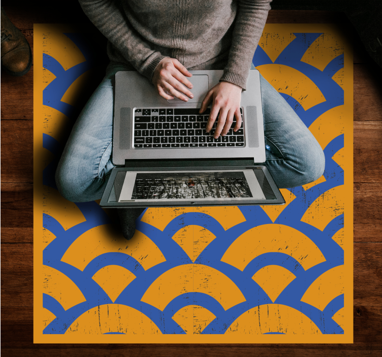 Το μοτίβο αποτελείται από ημικυκλίους σε μπλε χρώμα πάνω σε κίτρινο φόντο, προσφέροντας μια ξεχωριστή αισθητική πινελιά. Τοποθετήστε το στο πάτωμα σας και απολαύστε μια μοναδική διακόσμηση που θα σας ενθουσιάσει.