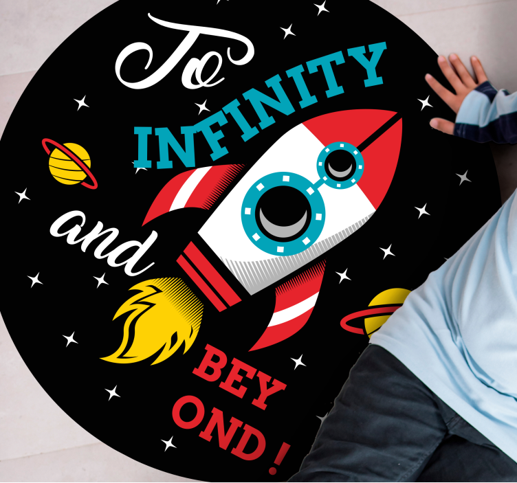 Αυτά τα αυθεντικά χαλιά βινυλίου με στρογγυλό σχήμα περιέχουν έναν ερυθρόλευκο πύραυλο σε μαύρο φόντο που αντιπροσωπεύει τον εξωτερικό χώρο και είναι ιδανικό για το παιδικό σας δωμάτιο.