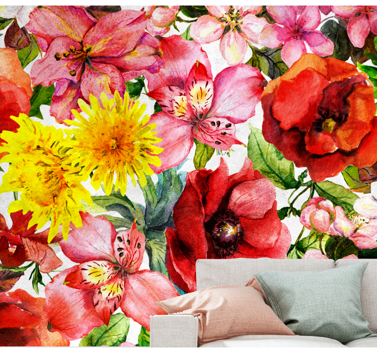 Η Φωτοταπετσαρία με λουλούδια Σύνθεση Ζωντανών Ανθών φέρνει τη ζωντάνια της φύσης στο σπίτι σας με μια εκπληκτική γραφική απεικόνιση γεμάτη παπαρούνες, λουλούδια και μαργαρίτες. Η ακουαρέλα των τριαντάφυλλων και των αγριολούλουδων δημιουργεί μια αίσθηση φρεσκάδας και ανθοφορίας που θα ενθουσιάσει κάθε επισκέπτη και θα αναβαθμίσει τον χώρο σας!