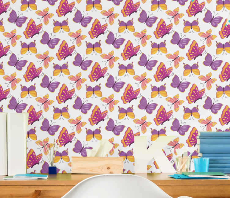 Η ταπετσαρία με πεταλούδες μωβ αποχρώσεις είναι ιδανική για όσους αναζητούν ένα μοναδικό και εντυπωσιακό στοιχείο διακόσμησης στο χώρο τους. Με τις μωβ και κίτρινες πεταλούδες, δημιουργεί μια ζωντανή και χαρούμενη ατμόσφαιρα που θα εντυπωσιάσει κάθε επισκέπτη!