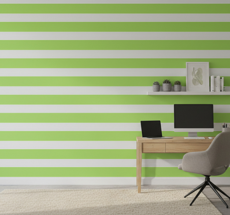 Η Ταπετσαρία γραφείου σε πράσινες-γκρι ρίγες είναι η ιδανική επιλογή για κάθε επαγγελματικό ή προσωπικό χώρο. Δημιουργεί μια αίσθηση ηρεμίας και ισορροπίας, ενθαρρύνοντας τη δημιουργικότητα και την παραγωγικότητα. Η μοναδική της σχεδίαση προσθέτει στυλ και χαρακτήρα σε οποιοδήποτε δωμάτιο, κάνοντάς την απαραίτητο στοιχείο διακόσμησης!
