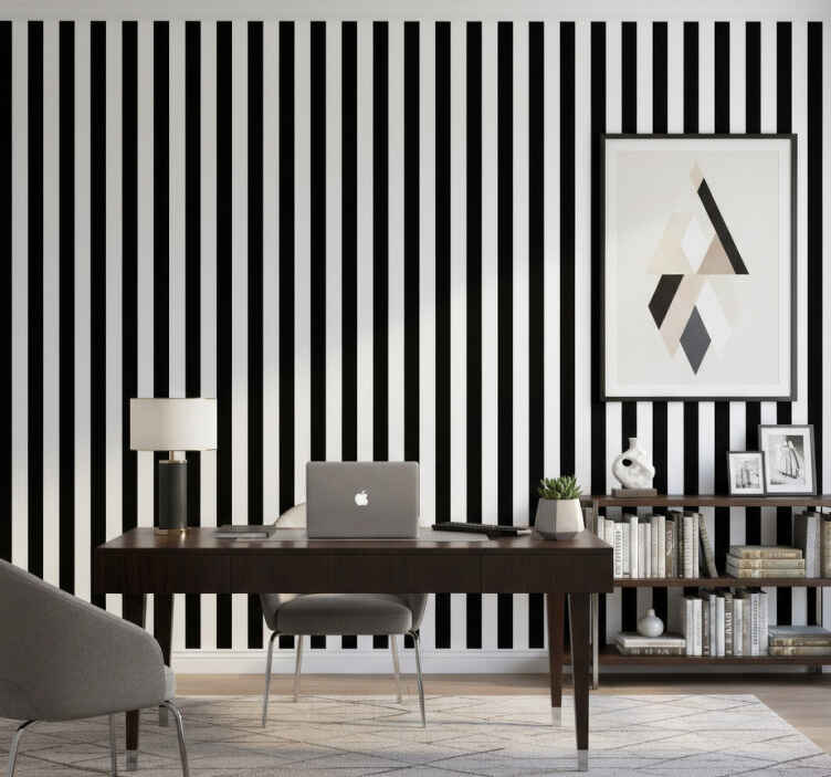 Η Ταπετσαρία γραφείου με κάθετες μαύρες ρίγες είναι η τέλεια επιλογή για διακόσμηση γιατί προσφέρει μία κομψή και μοντέρνα ατμόσφαιρα στον χώρο σας. Οι κάθετες ρίγες δημιουργούν την αίσθηση ύψους και διευρύνουν οπτικά τον χώρο, κάνοντάς τον πιο ευχάριστο και παραγωγικό. Με την τοποθέτησή της, θα ενισχύσετε το επαγγελματικό προφίλ σας και θα εντυπωσιάσετε επισκέπτες και συνεργάτες!